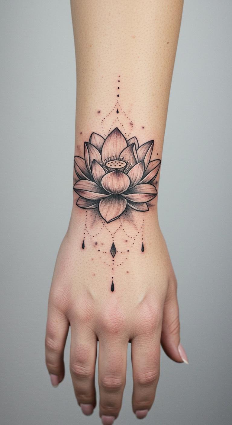 Lotus Flower Hand Tattoo
