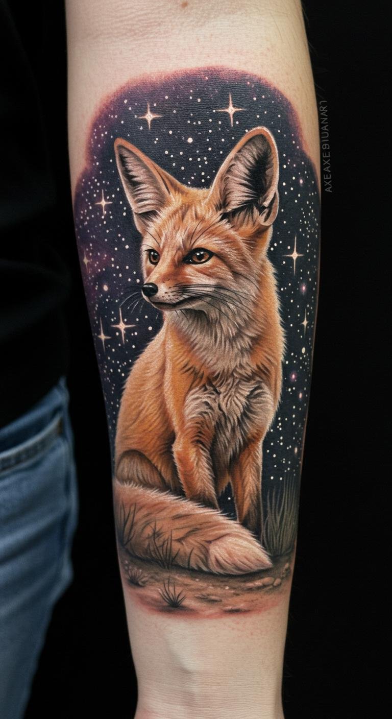 This tattoo symbolizes adaptability and cunning, traits embodied by the desert fox, which thrives in challenging environments.