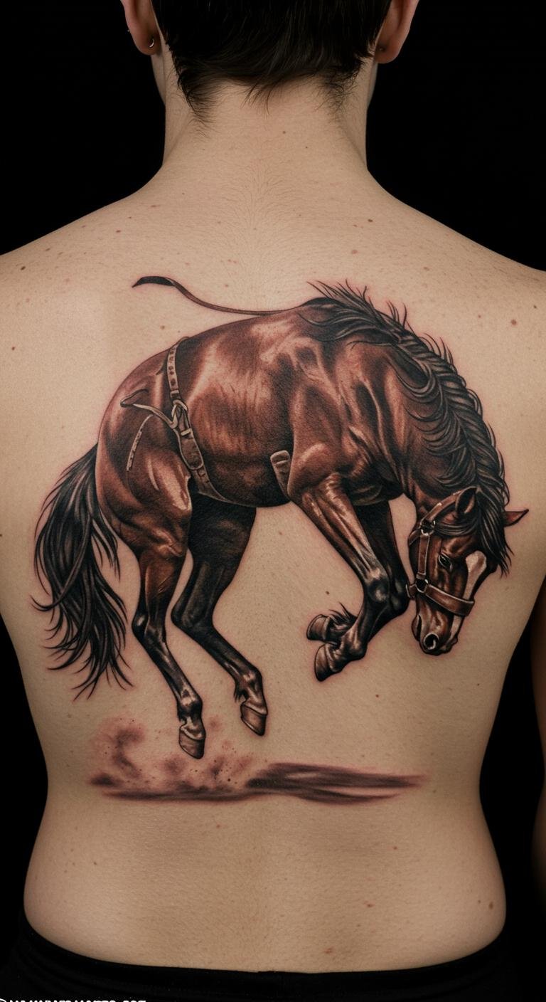 The bucking horse represents the untamed strength within, reminding the individual of their desire for liberation and the thrill of embracing life’s adventures.