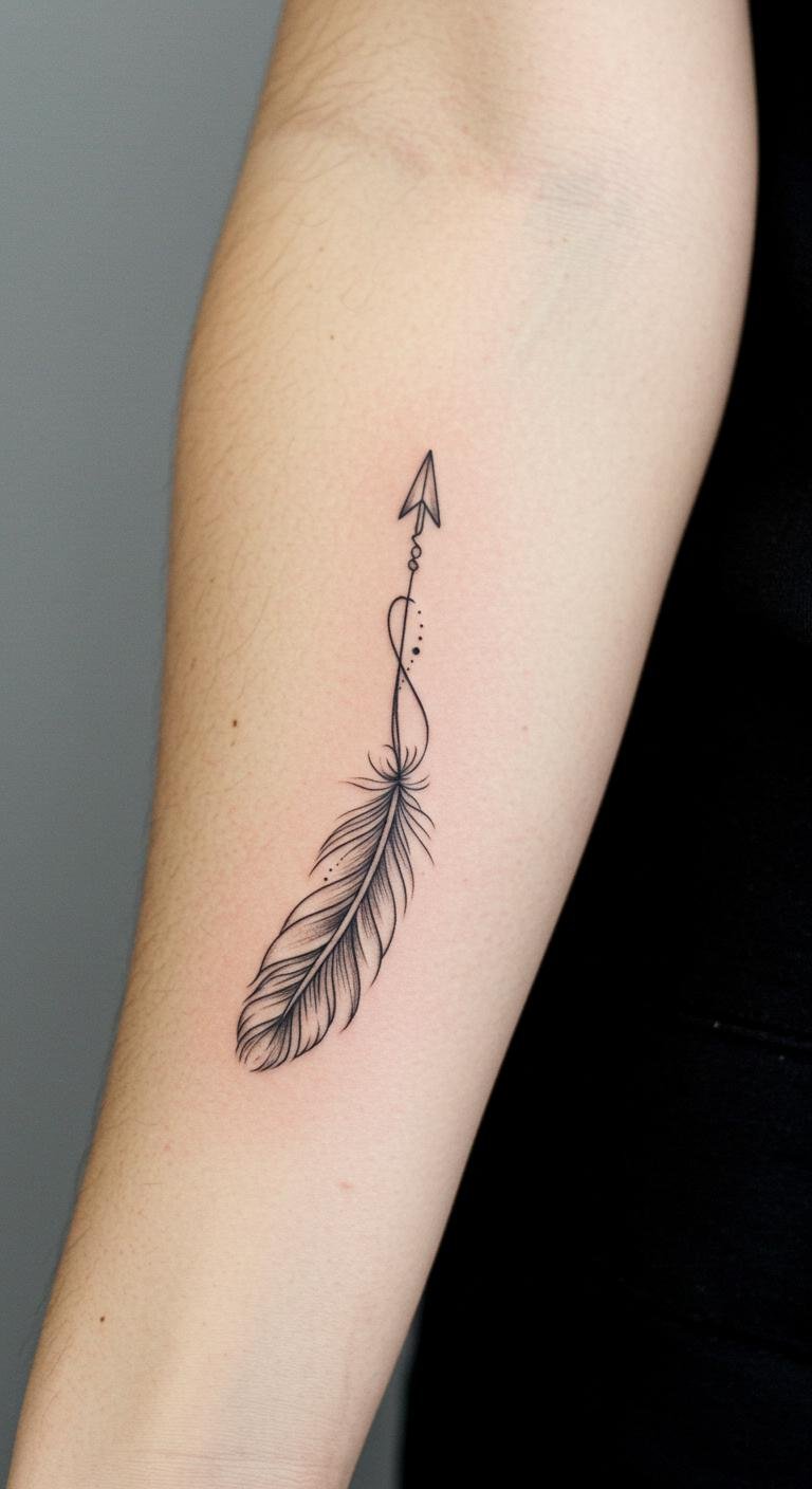 The Feather and Arrow Tattoo beautifully represents the duality of freedom and direction. Placed on the forearm, it remains visible, serving as a constant reminder to pursue one’s goals while embracing a free spirit.