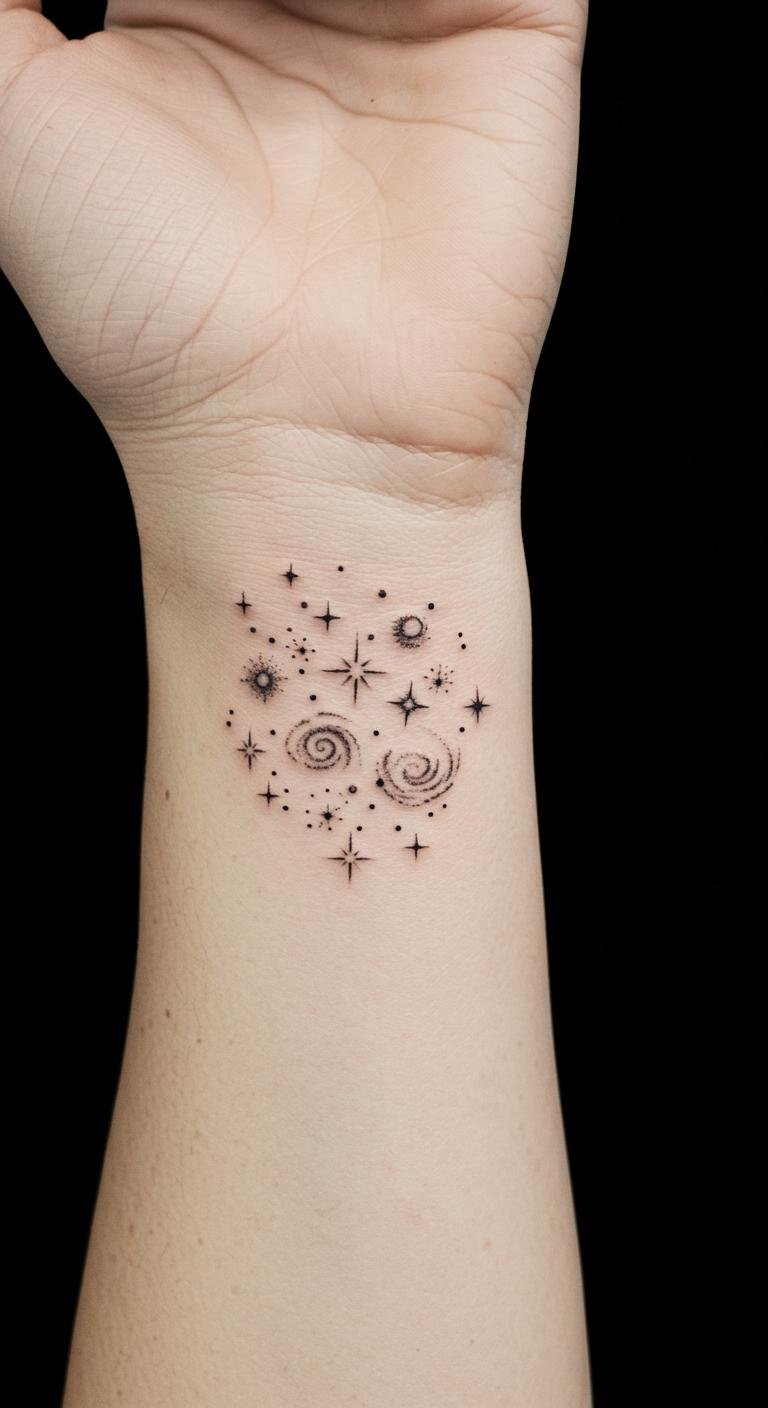 This star cluster tattoo embodies the vastness of the universe and the journey of the free spirit.