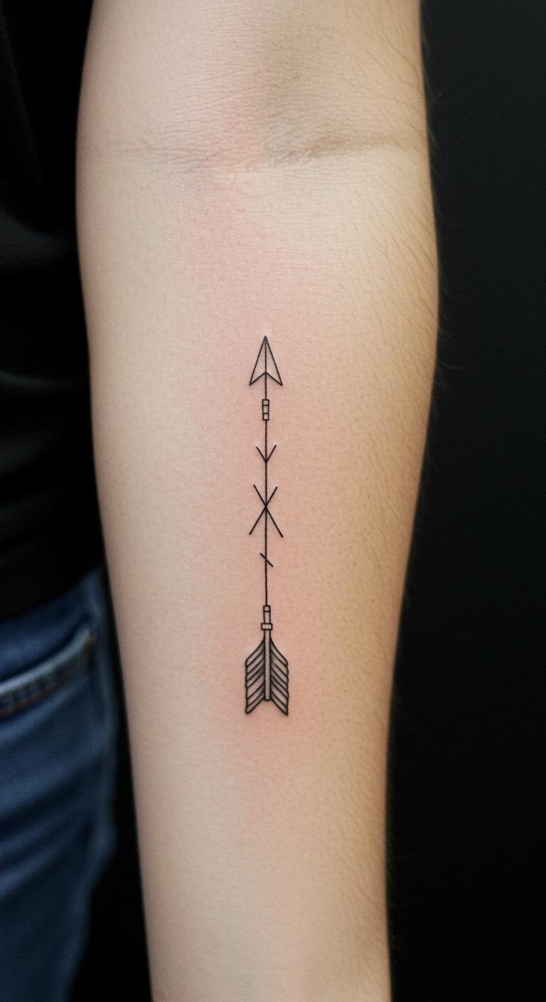 The minimalist arrow tattoo on the forearm serves as a powerful emblem of direction and purpose. Its clean lines not only capture the essence of arrow symbolism but also act as a constant reminder to pursue personal goals.