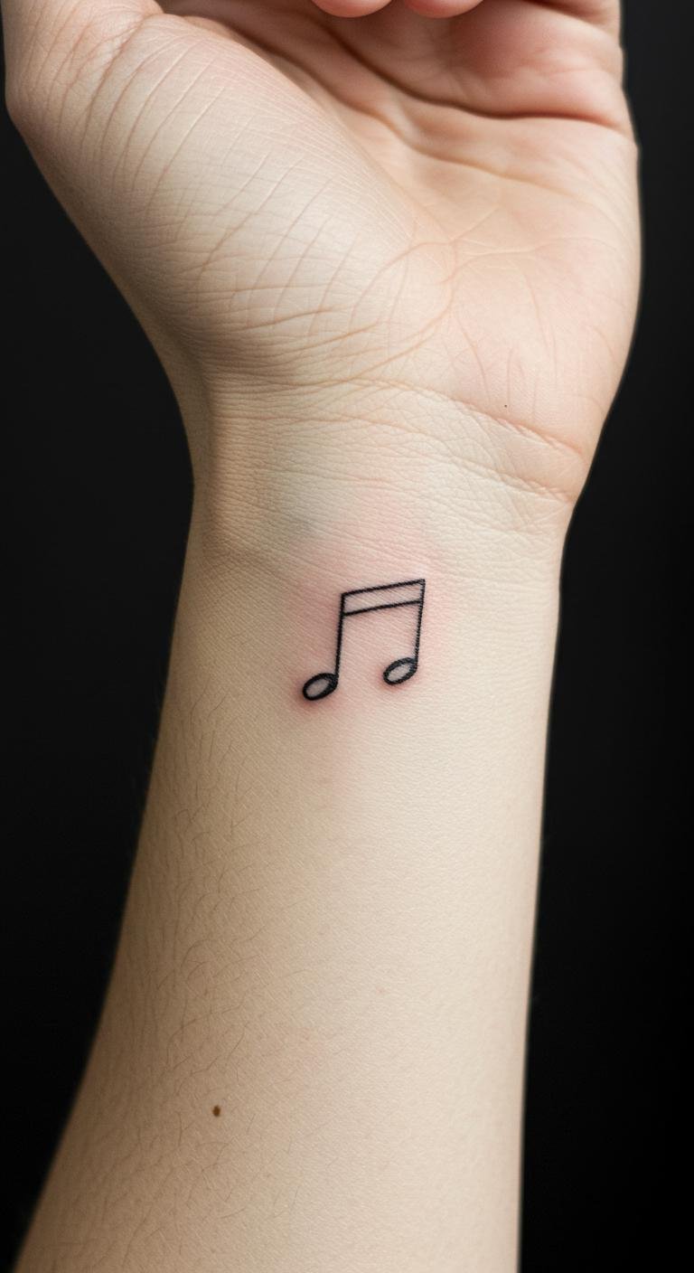 This minimalist music note tattoo serves as a poignant symbol of one’s love for melodies, embodying freedom and creativity.