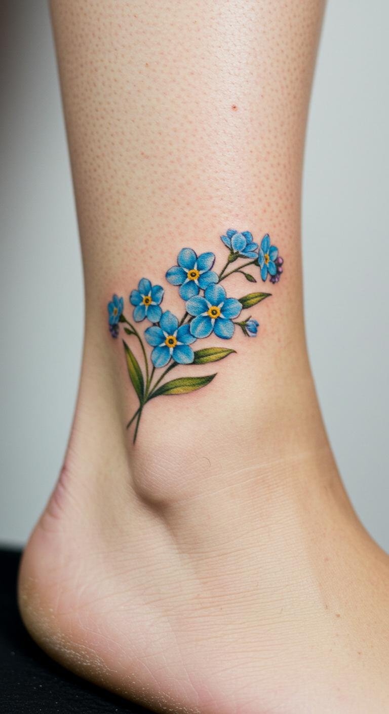 This forget-me-not tattoo beautifully symbolizes enduring love and cherished memories, making it a meaningful choice for those who value their connections.