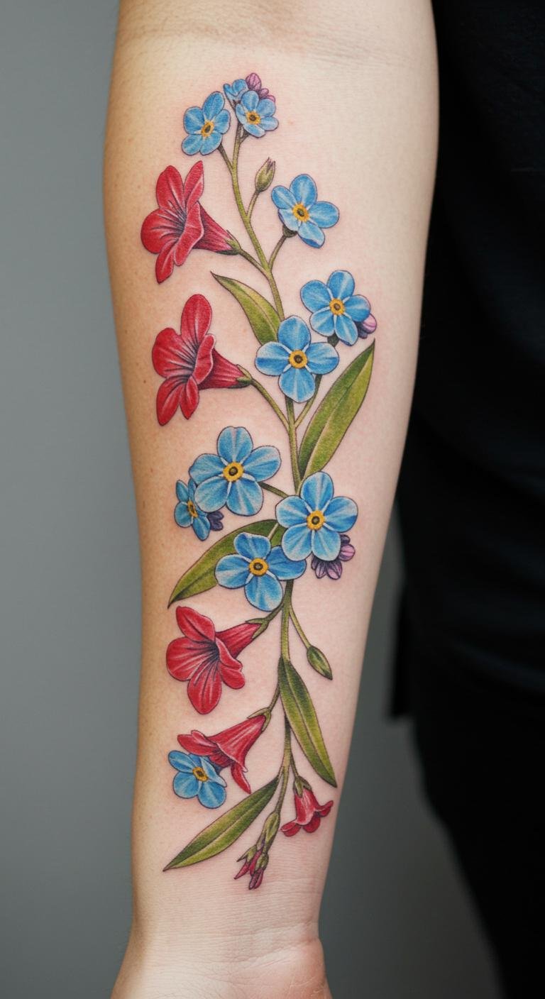 Forget-Me-Not and Red Bloom Forearm Tattoo