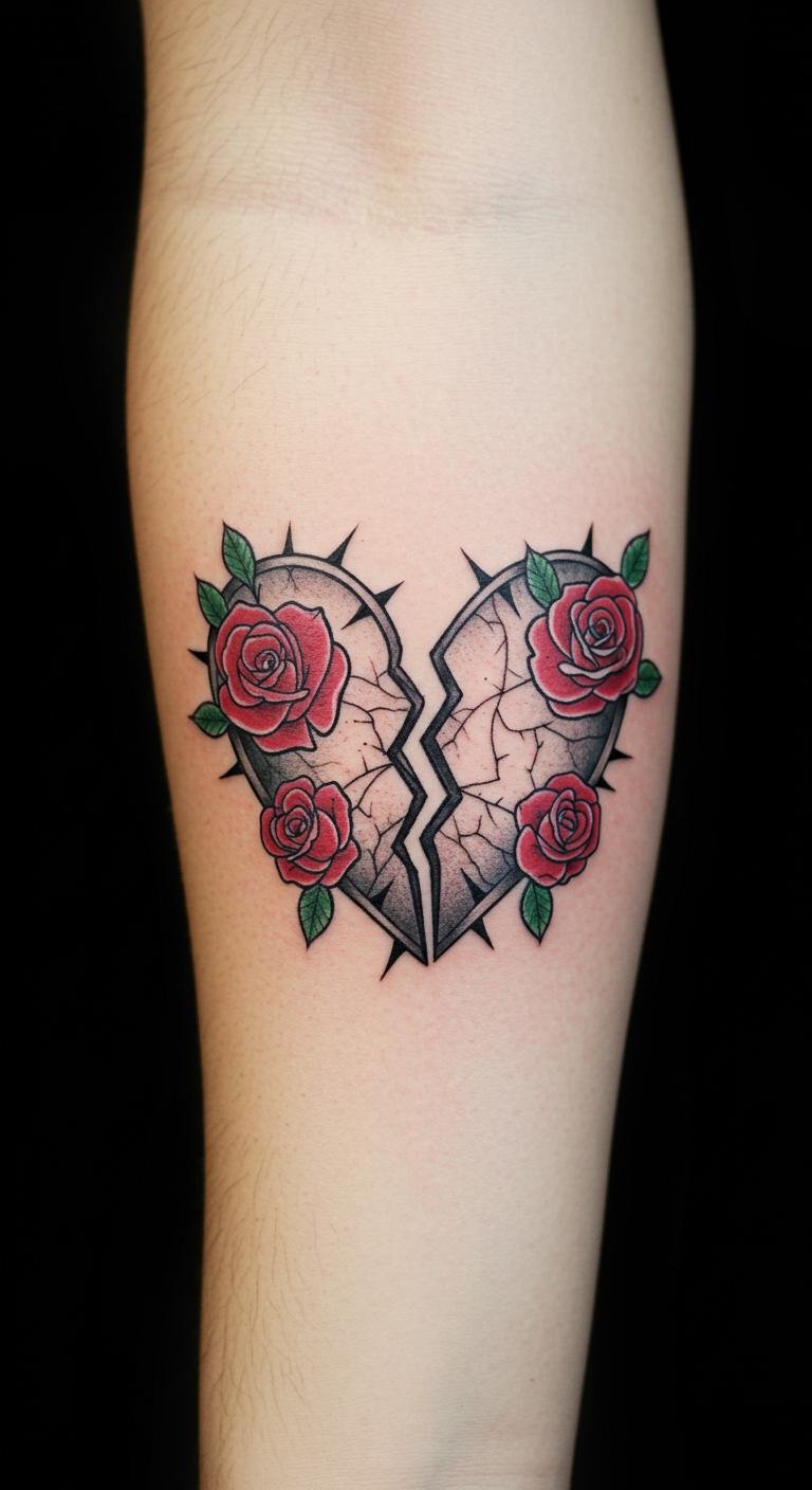 This broken heart tattoo symbolizes resilience and healing, serving as a powerful reminder of the journey through love and loss.