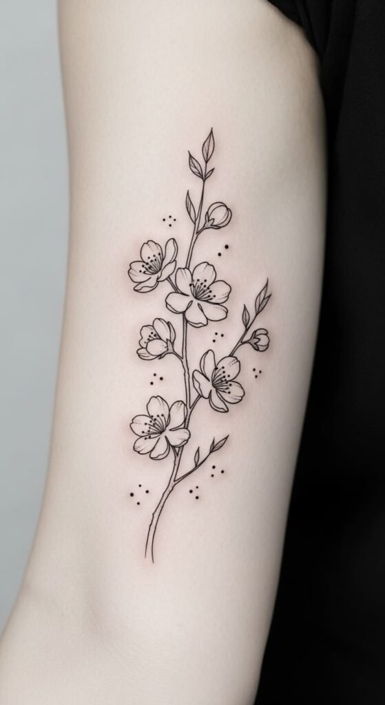 The cherry blossom tattoo symbolizes the transient nature of life, reminding the wearer of the beauty found in impermanence.