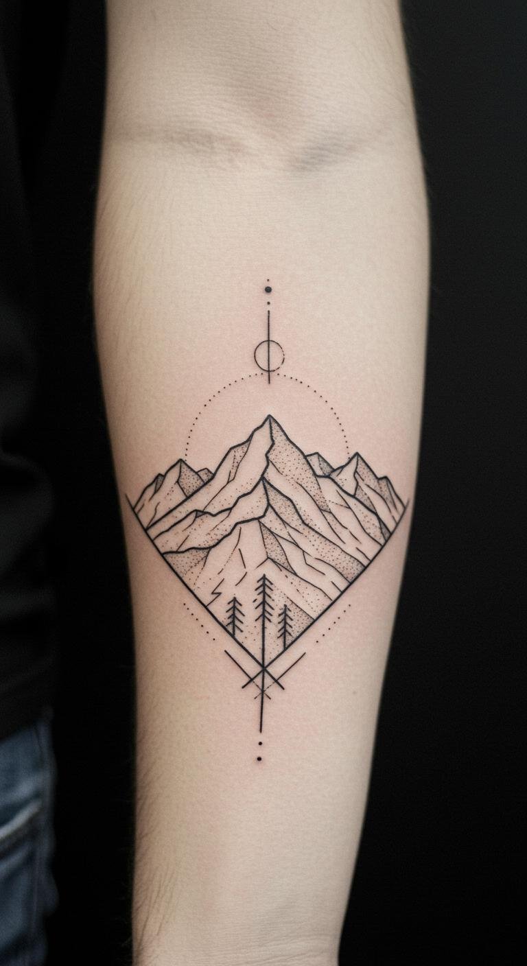 The minimalist design allows for a refined aesthetic, while the geometric elements represent resilience and exploration, making it not just a piece of art, but a personal emblem of one’s passion for adventure.