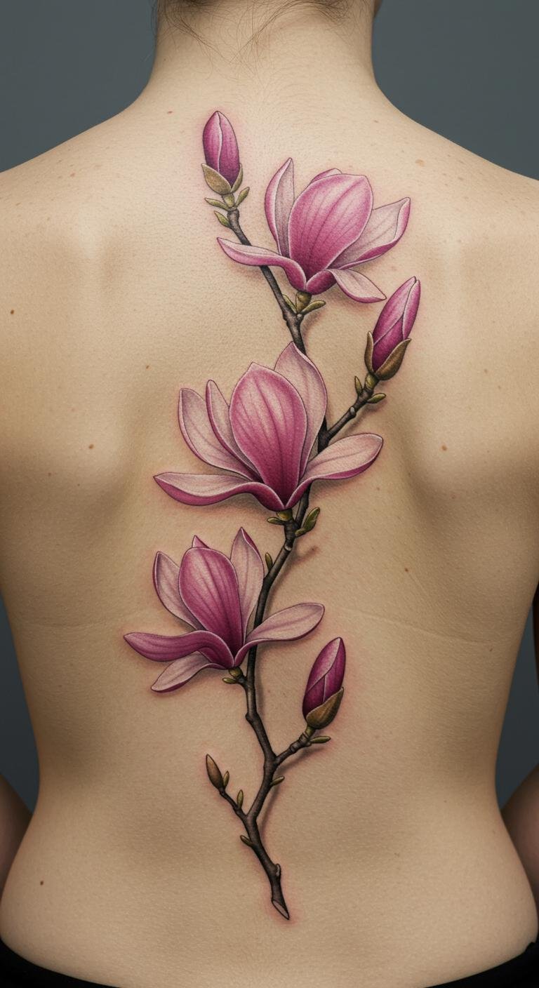 The Magnolia Blossom tattoo symbolizes beauty, resilience, and perseverance, making it a powerful emblem for self-expression.