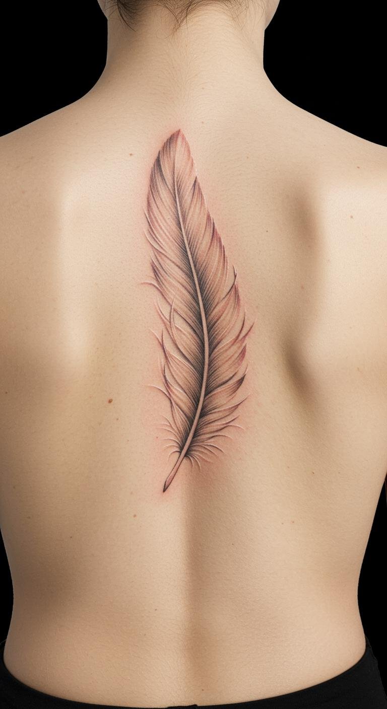Its placement along the spine enhances the body’s natural curves, embodying lightness of being. The varied styles of feathers may reflect personal meanings or cultural traditions, encouraging the wearer to embrace their individuality.
