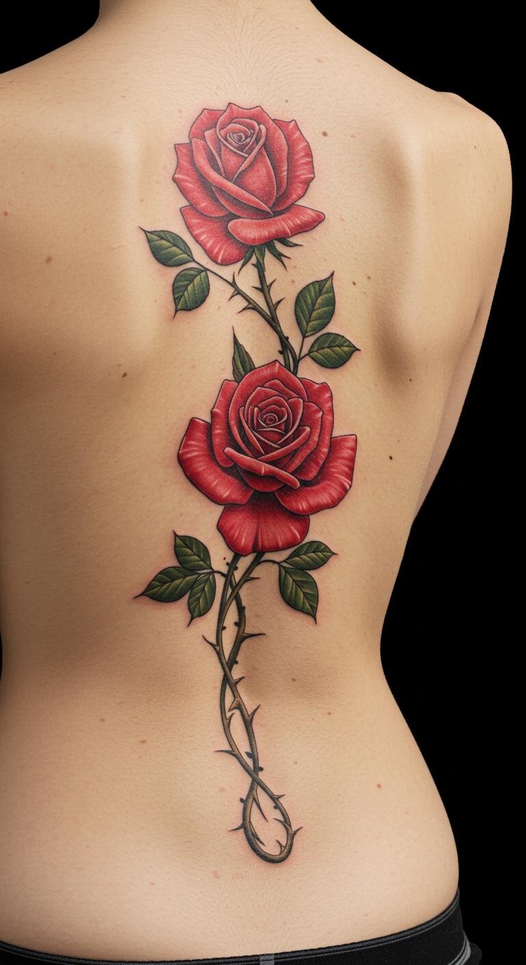 The natural placement on the spine enhances the fluidity of the design, allowing it to flow seamlessly with the body’s movements and curves, making it a personal and meaningful expression of one’s experiences and growth.