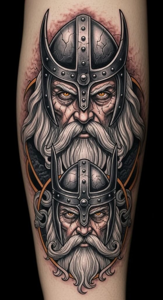 This tattoo symbolizes the deep wisdom and foresight attributed to Odin’s ravens, Huginn and Muninn, who are thought to gather knowledge from across the realms.