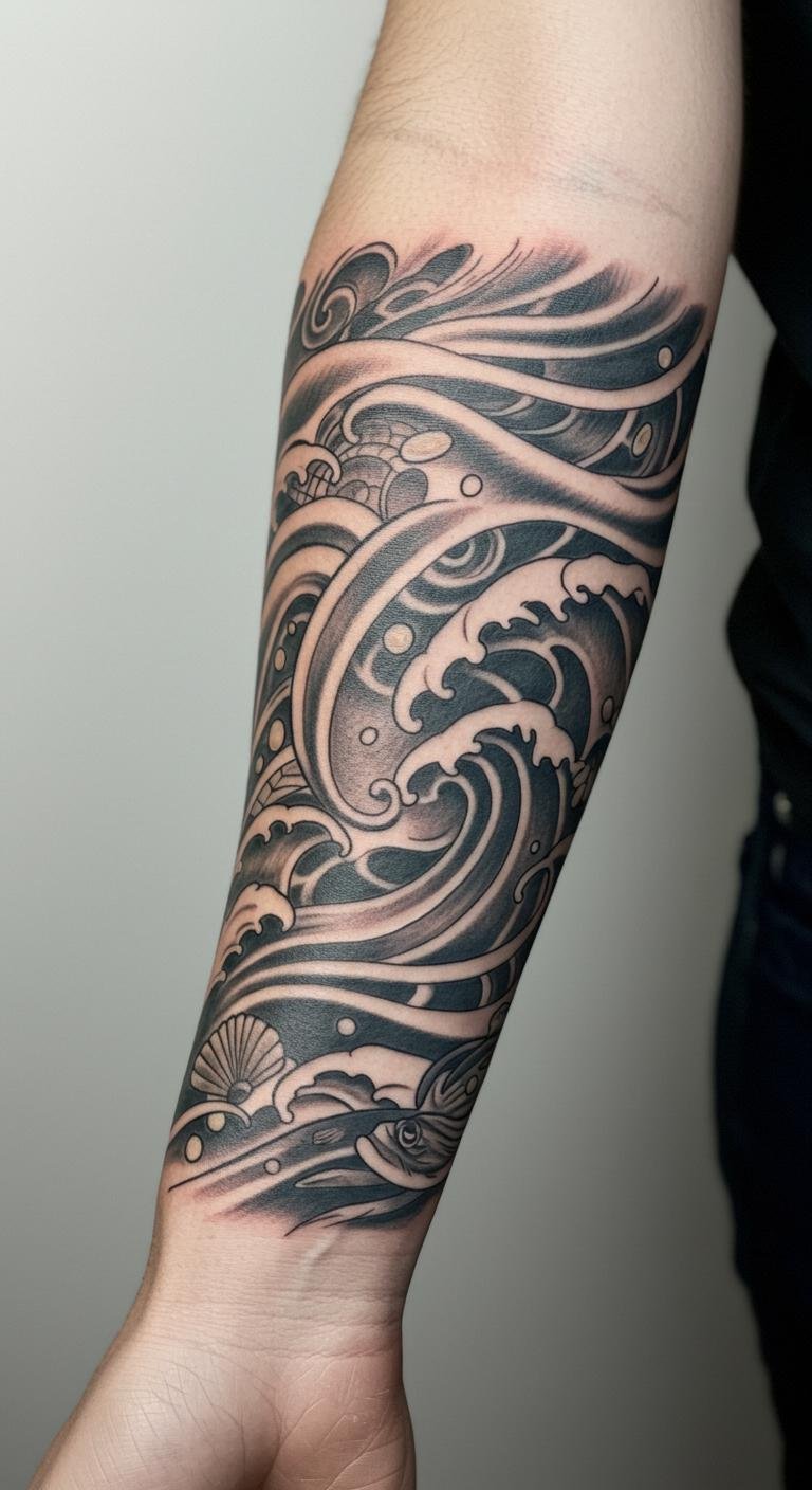 Njord’s Waves Tattoo: The Fluidity of the Ocean