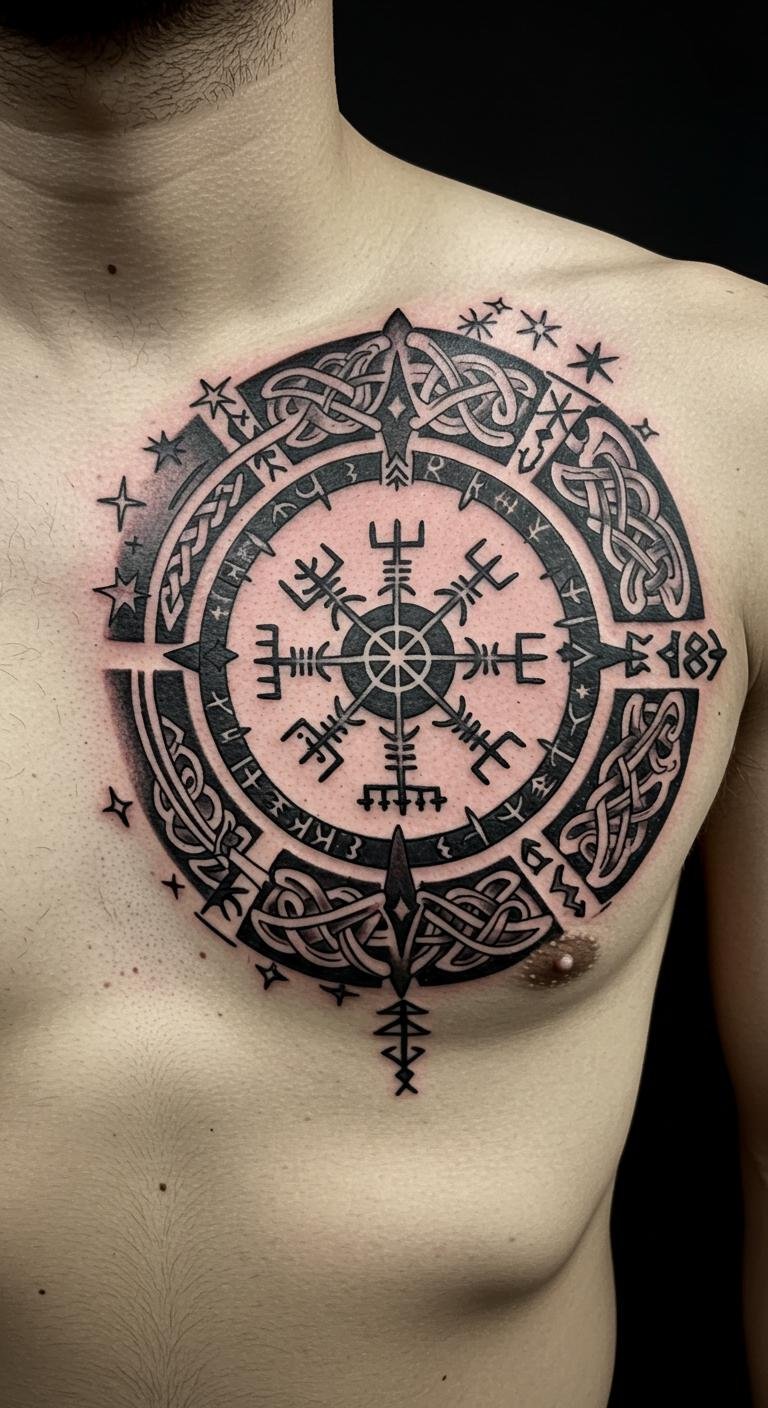 Viking Compass Chest Tattoo: Navigating the Cosmos
