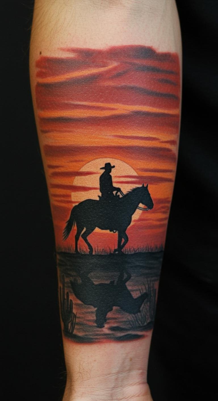 Old Western Cowboy Sunset Tattoo