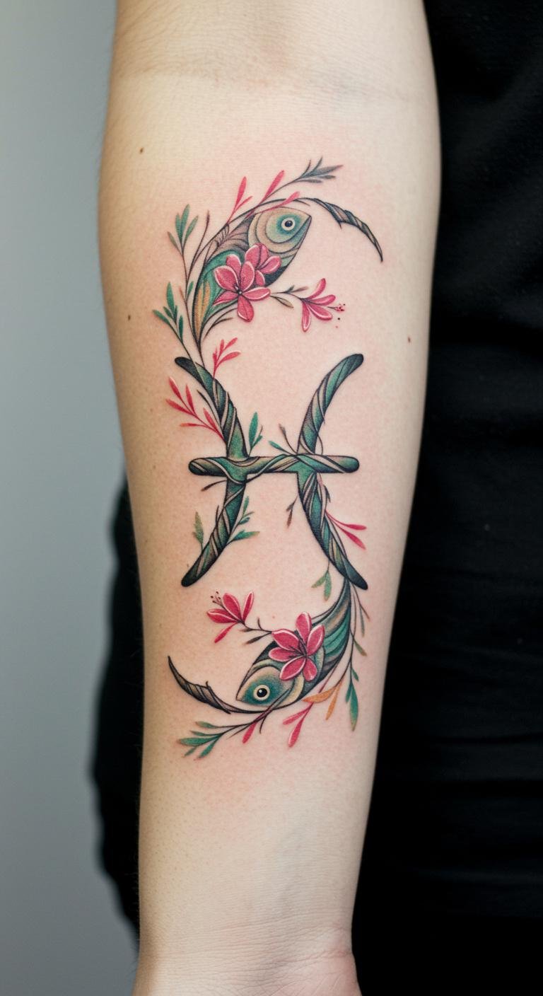 Pisces Floral Fusion Tattoo