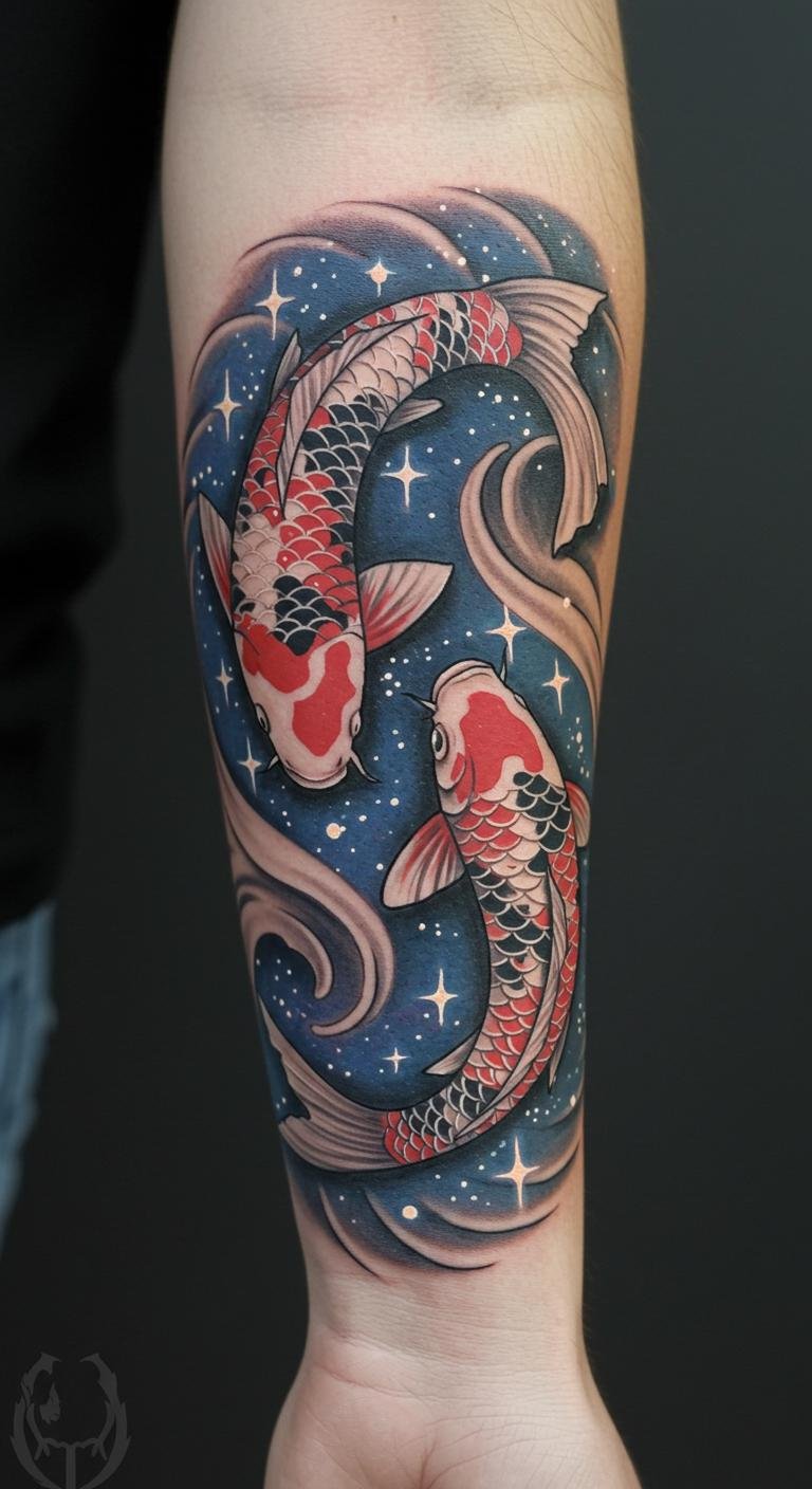 Celestial Pisces Koi Tattoo