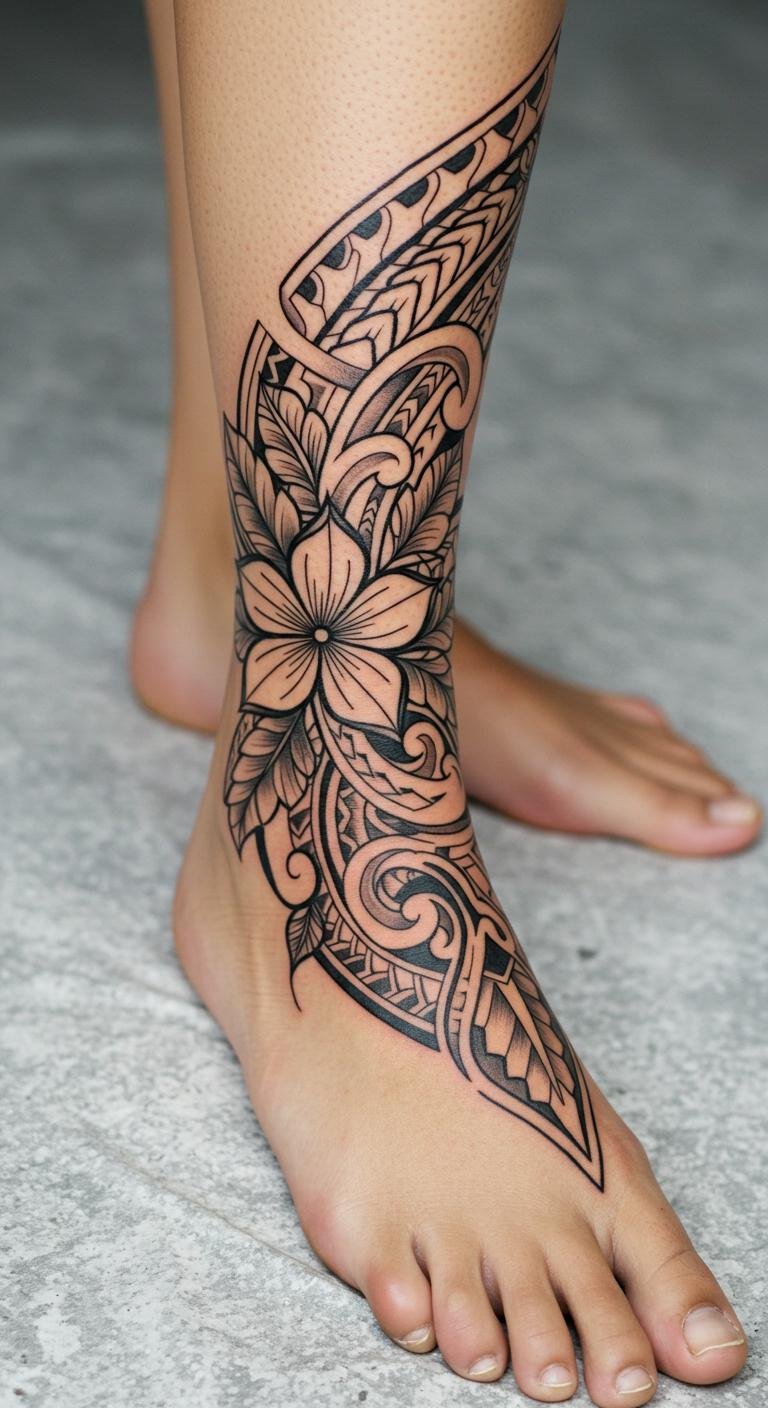 Polynesian Foot and Ankle Tattoo With Bold Symmetry