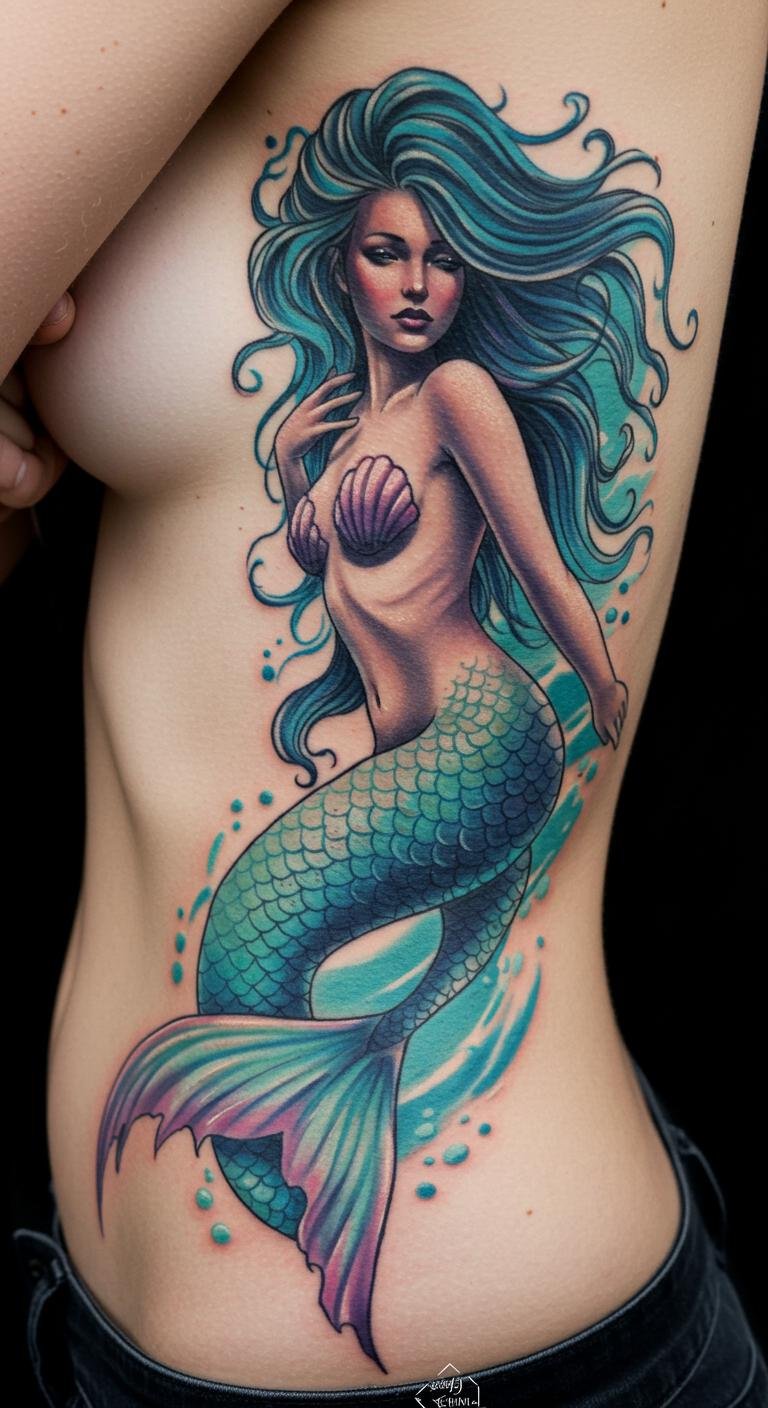 This tattoo symbolizes freedom and femininity, embodying the spirit of the mermaid as a creature of the sea.