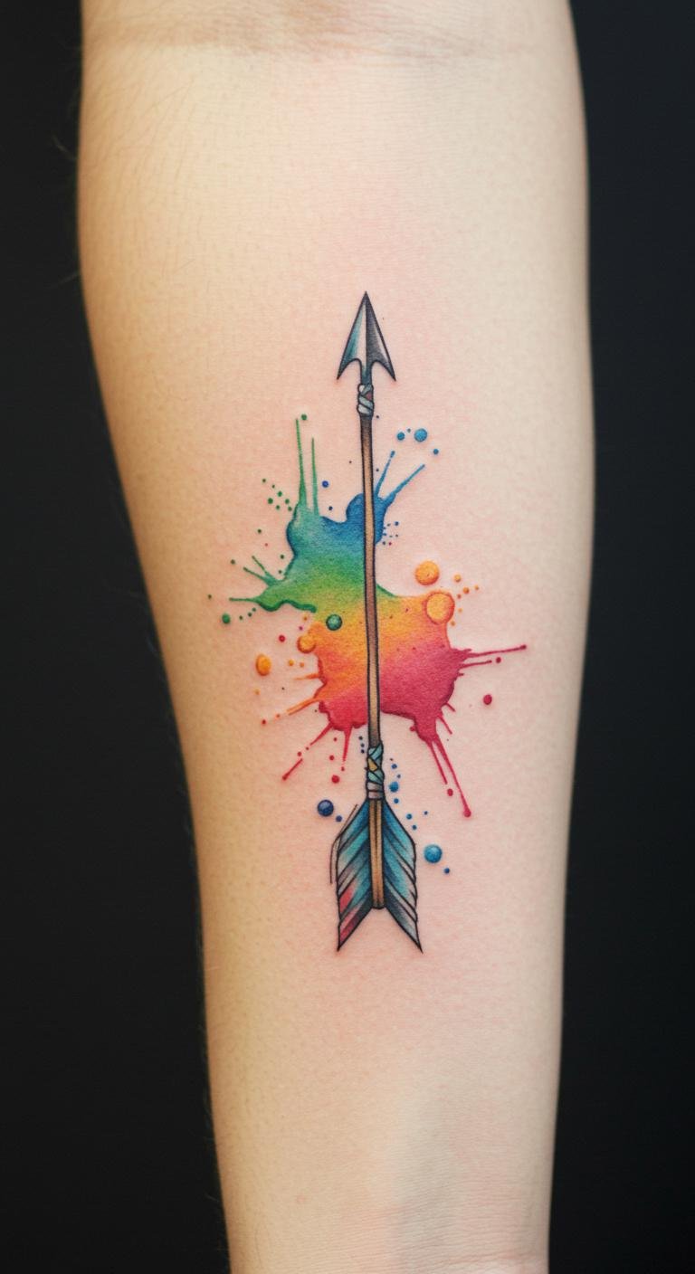 Vibrant Watercolor Sagittarius Arrow Tattoo