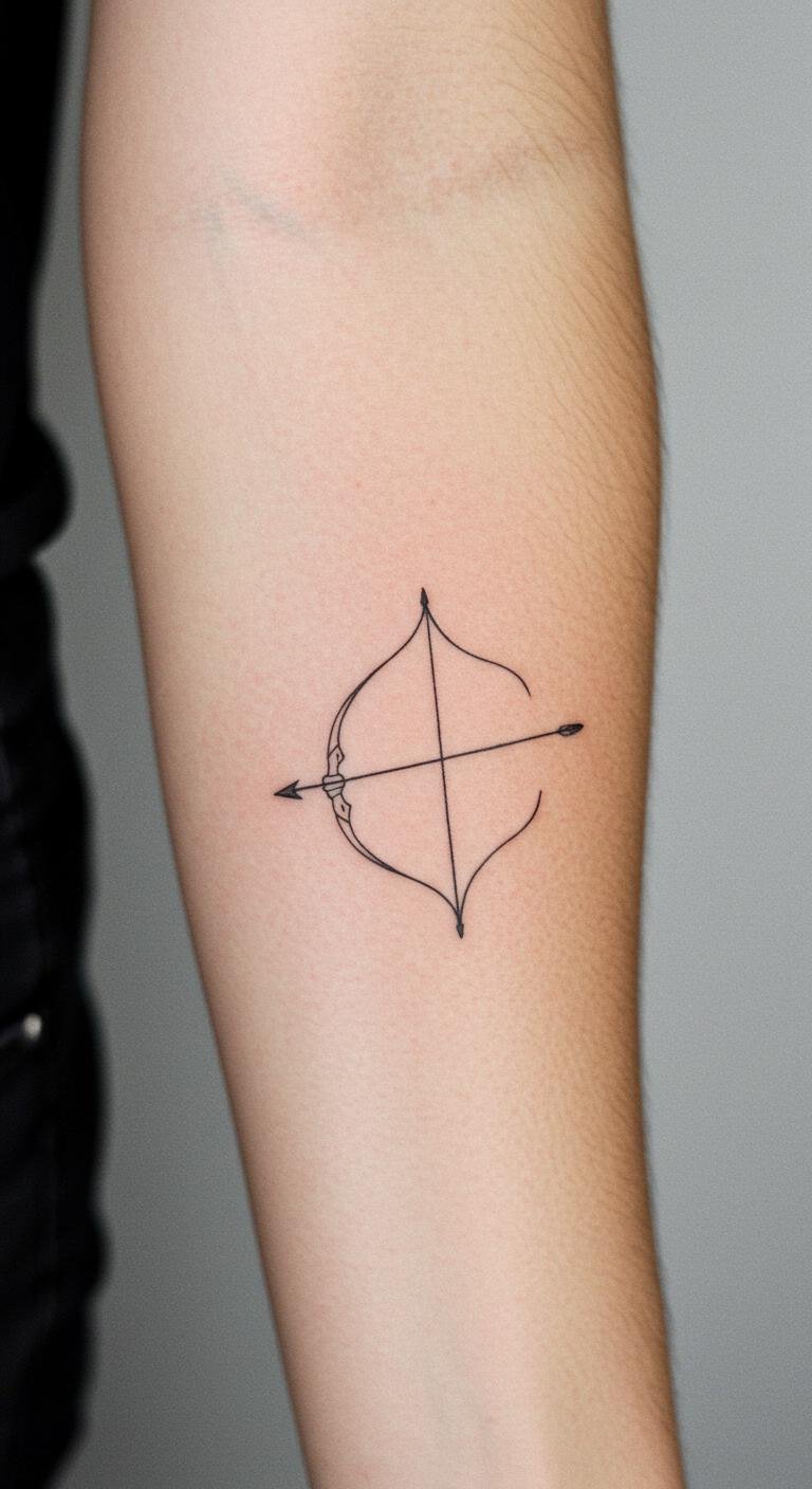 This tattoo, positioned on the forearm, symbolizes the adventurous spirit of Sagittarius, embodying freedom and the pursuit of truth.