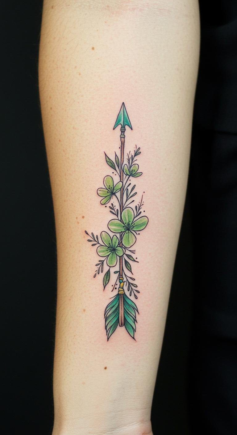 The flowers symbolize the beauty of exploration, while the arrow emphasizes direction and purpose, creating an inspiring piece that resonates deeply with the wearer’s journey.