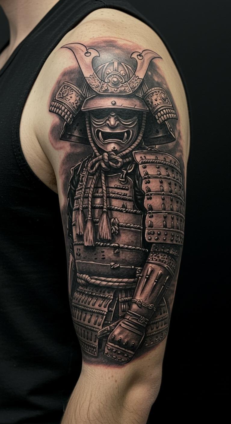 This tattoo design embodies the rich heritage of the samurai, symbolizing resilience and the warrior spirit.