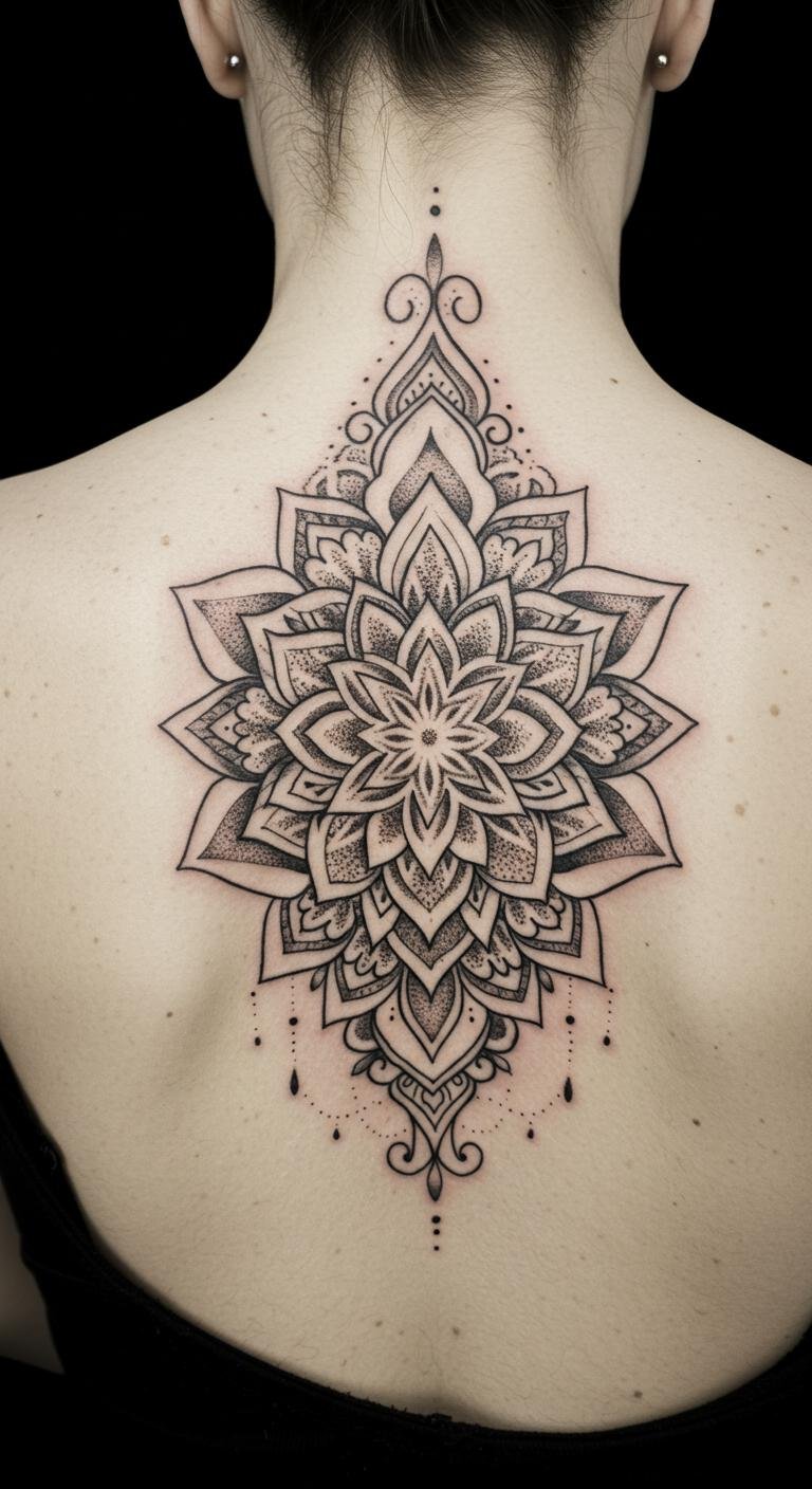Channel Your Inner Strength With Geometric Mandala Spine Tattoos