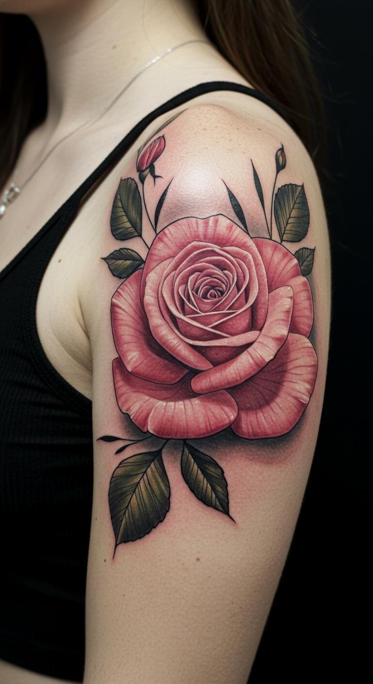 Elegant Rose Shoulder Tattoo