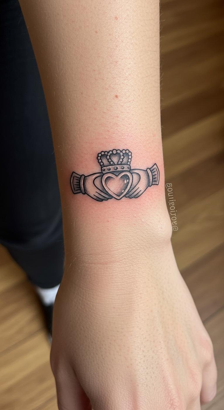Small Irish Tattoo With Claddagh and Cultural Symbols