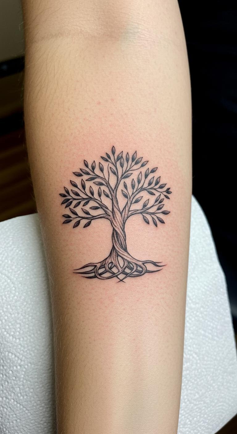 Placed on the forearm, this tattoo serves as a constant reminder of one’s roots and the beauty of existence.