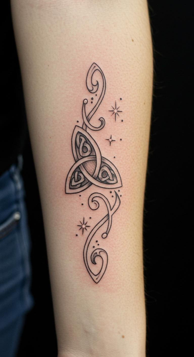 Small Irish Tattoo With Celtic Knots and Stars