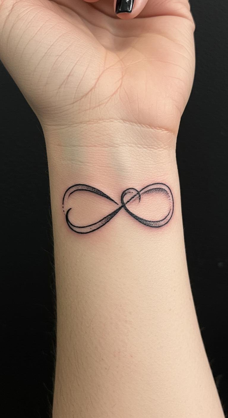 This tattoo design beautifully encapsulates the eternal bond you share with loved ones. The infinity symbol and heart weave together to symbolize unbreakable connections that transcend time, making it a perfect representation of love and remembrance.