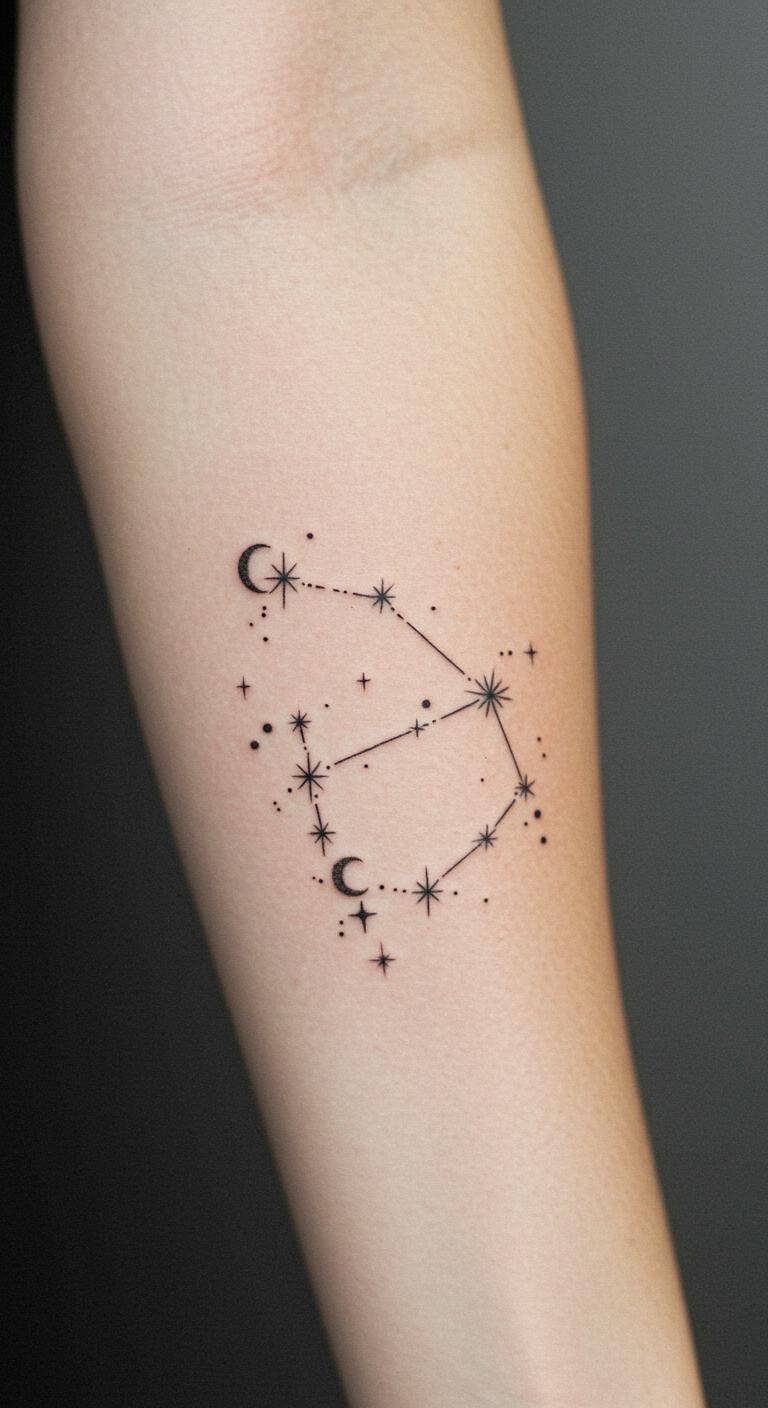 Placed on the forearm, it serves as a visible reminder of one’s personal journey and connection to their astrological identity. The location allows for easy visibility, making it a conversation starter and a source of pride.