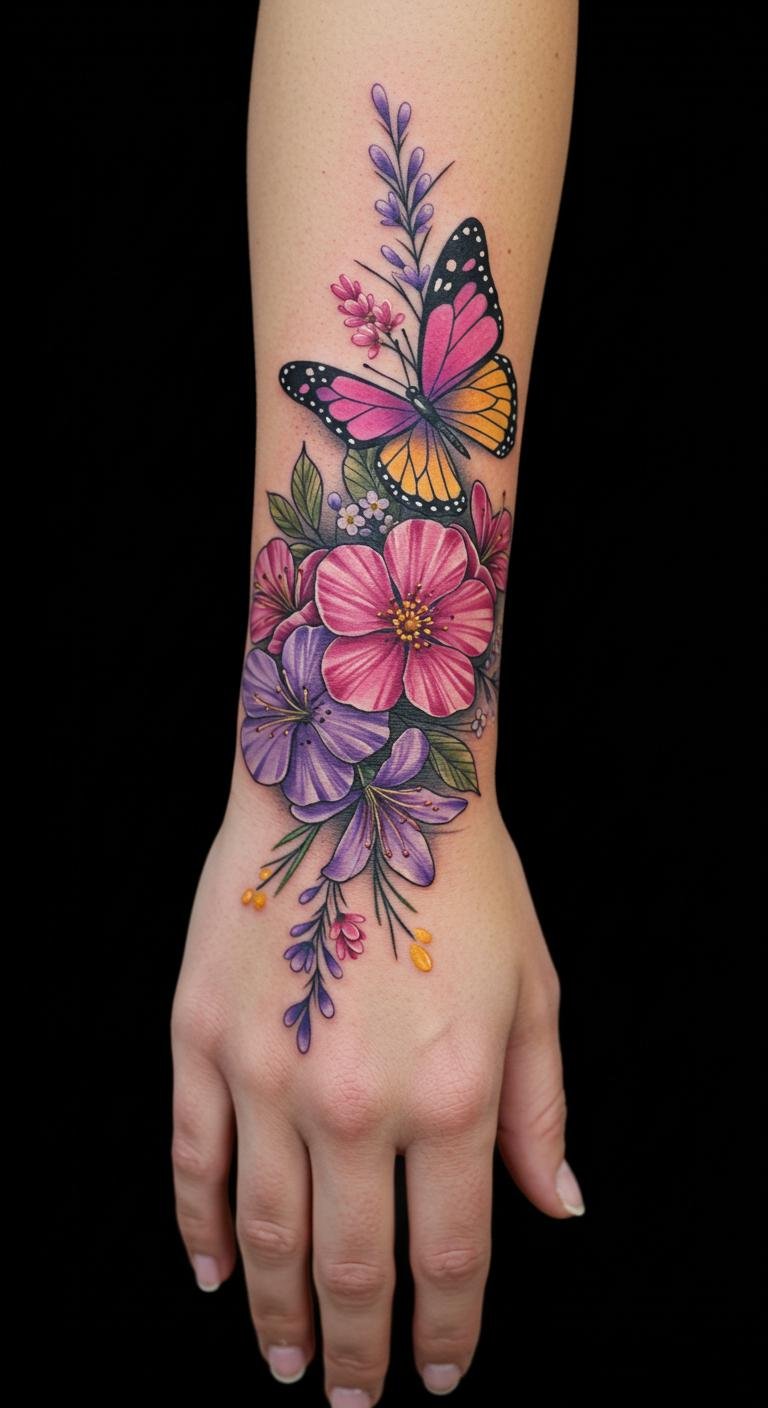 Floral and butterfly tattoos often symbolize beauty and transformation, making them a perfect choice for expressive wrist art.